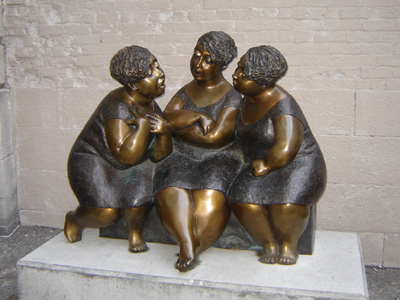 Old Montreal中某一街角的三個女人銅像