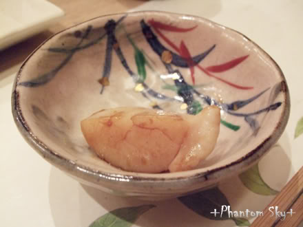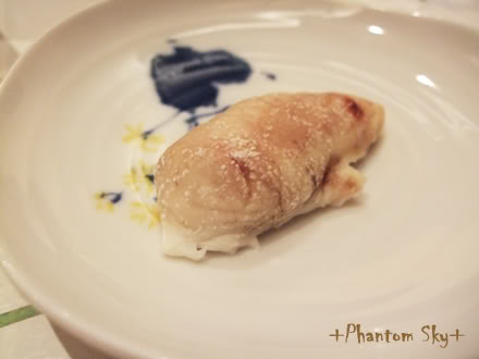 稍微烤過的河豚白子,上面灑了些岩鹽(沒記錯的話)
