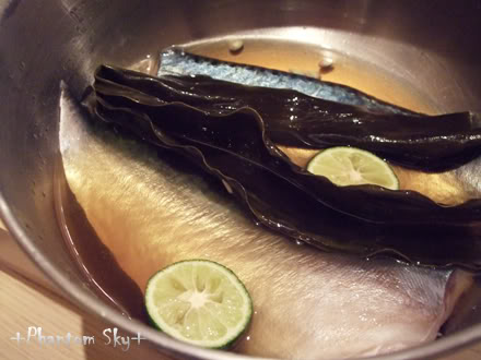 用昆布跟檸檬醃了好一陣子的鯖魚